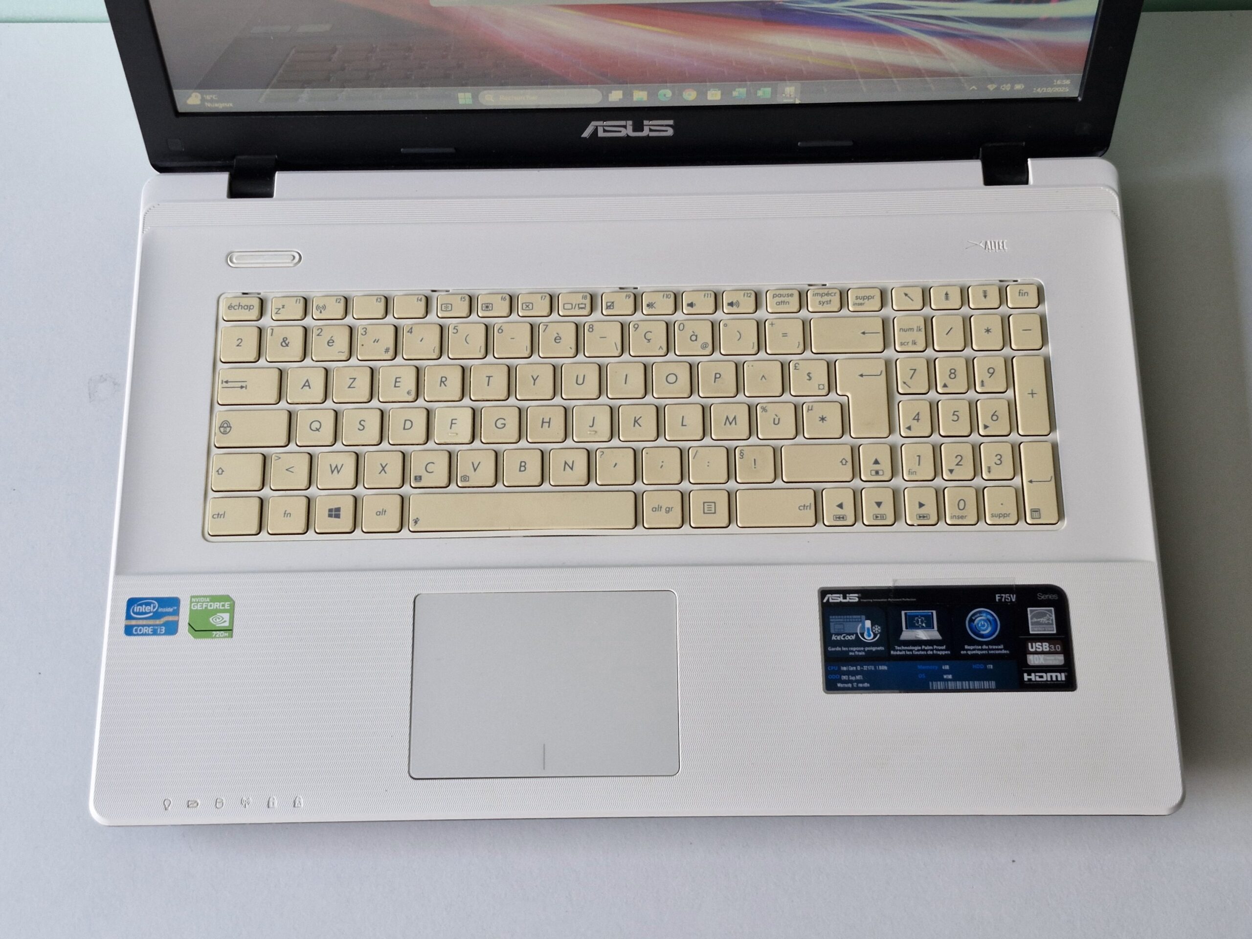 ✔️ Modèle : ASUS X75VC – Série F75V