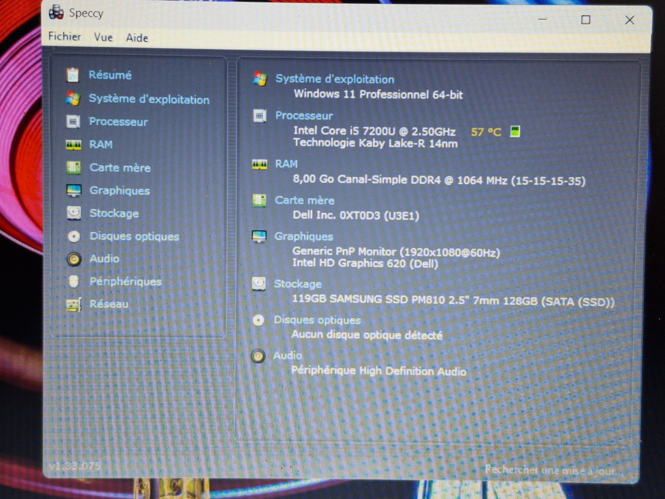 ✔️ GPU : Intel HD Graphics 620 intégré