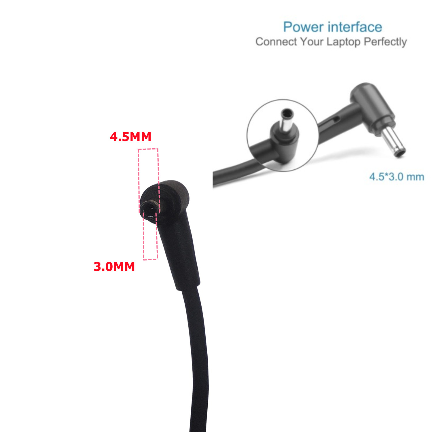 - Connecteur : 4.5 × 3.0 mm (avec pin central)