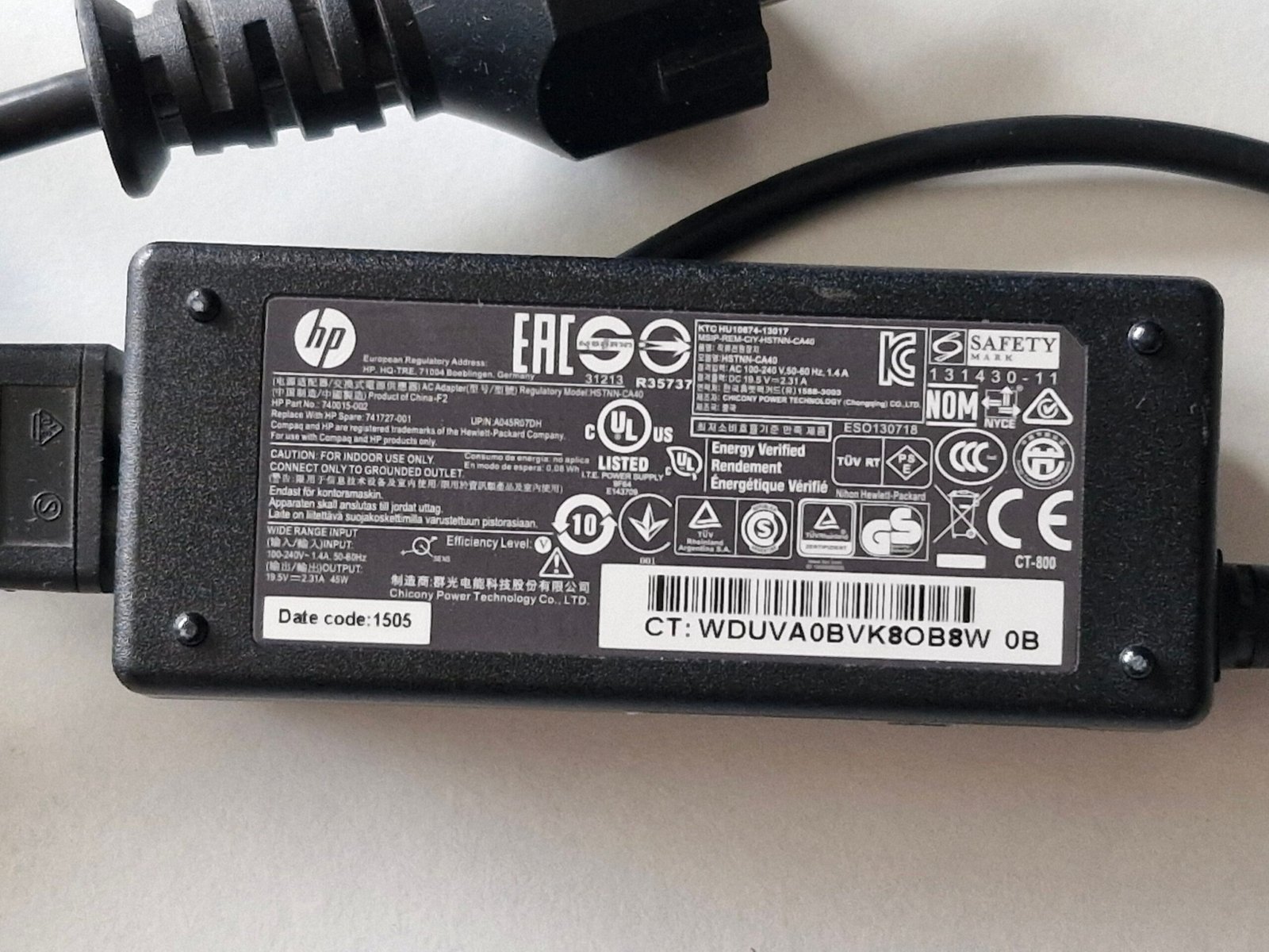 🔌 Adaptateur secteur HP original, testé et prêt à l’emploi.