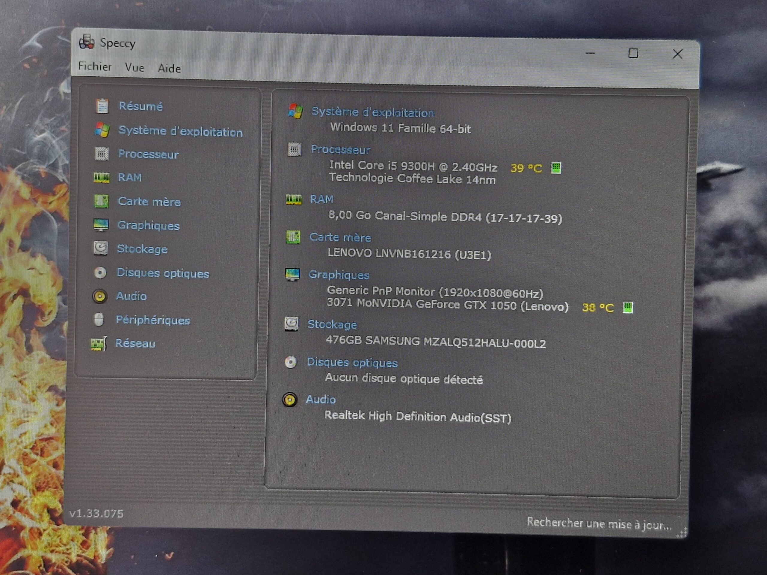 ✔️ Carte graphique : NVIDIA GeForce GTX 1050 (Lenovo)