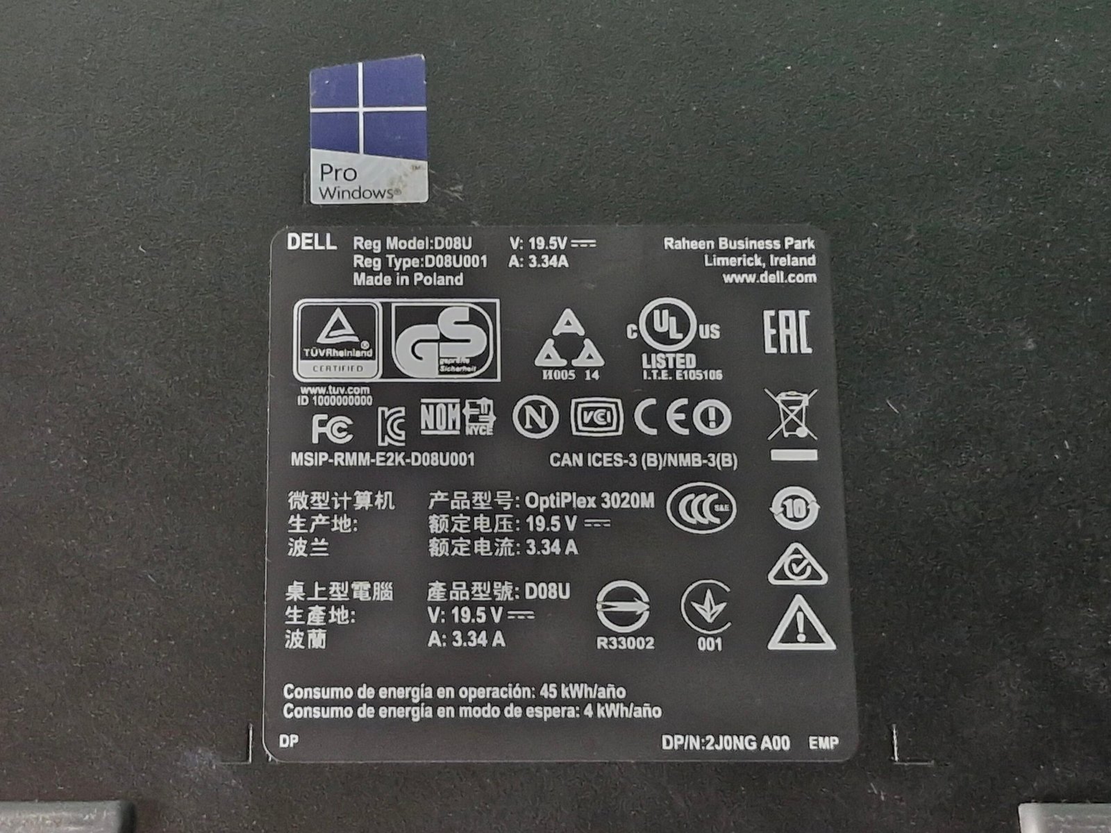 ✔️ Alimentation externe : Dell D08U – 19,5 V / 3,34 A (adaptateur inclus)