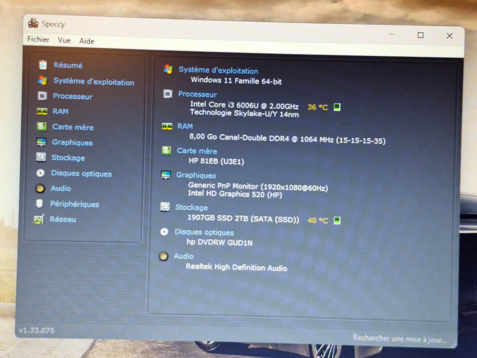 ✔️ Système : Windows 11 Famille 64 bits