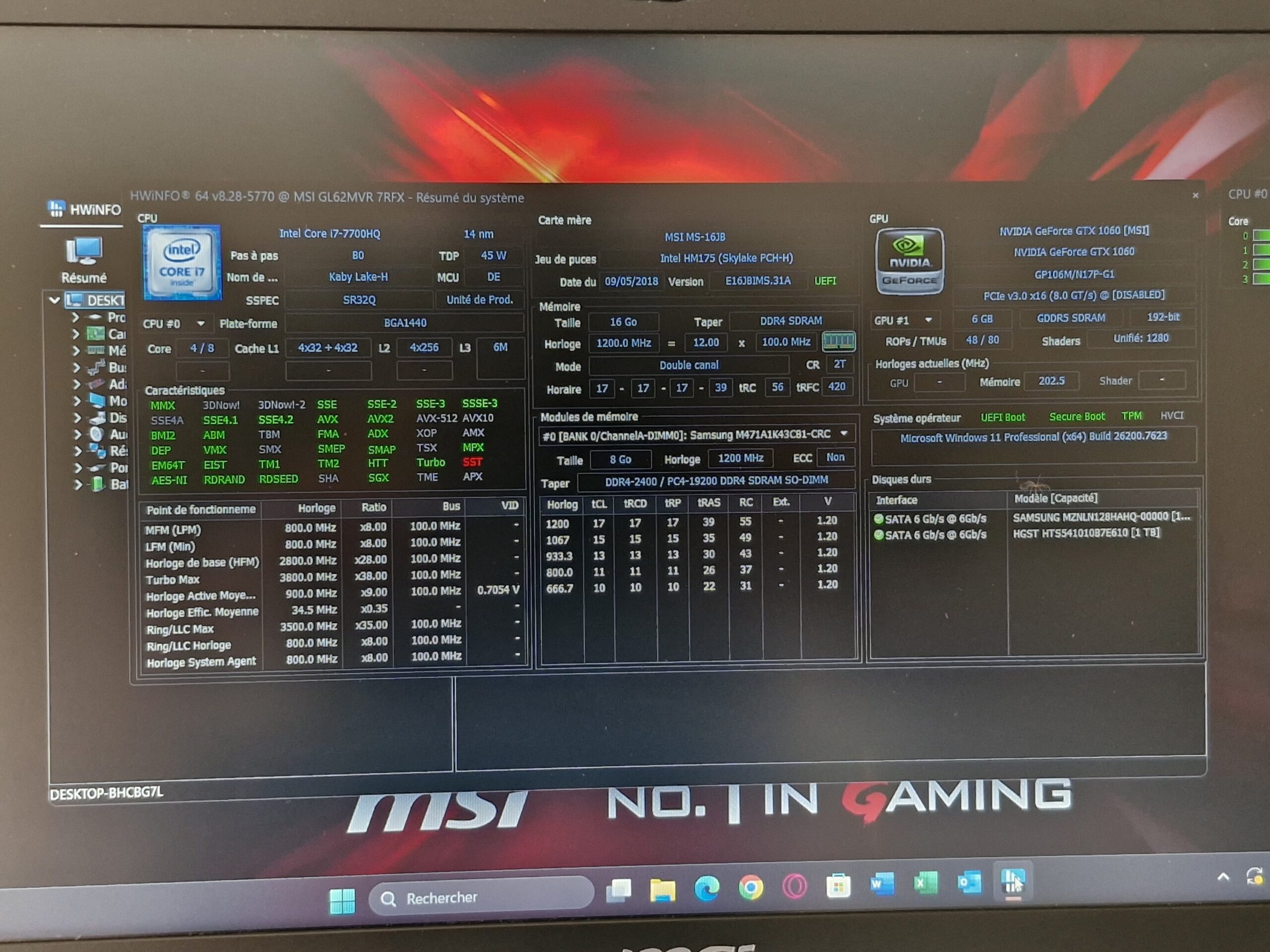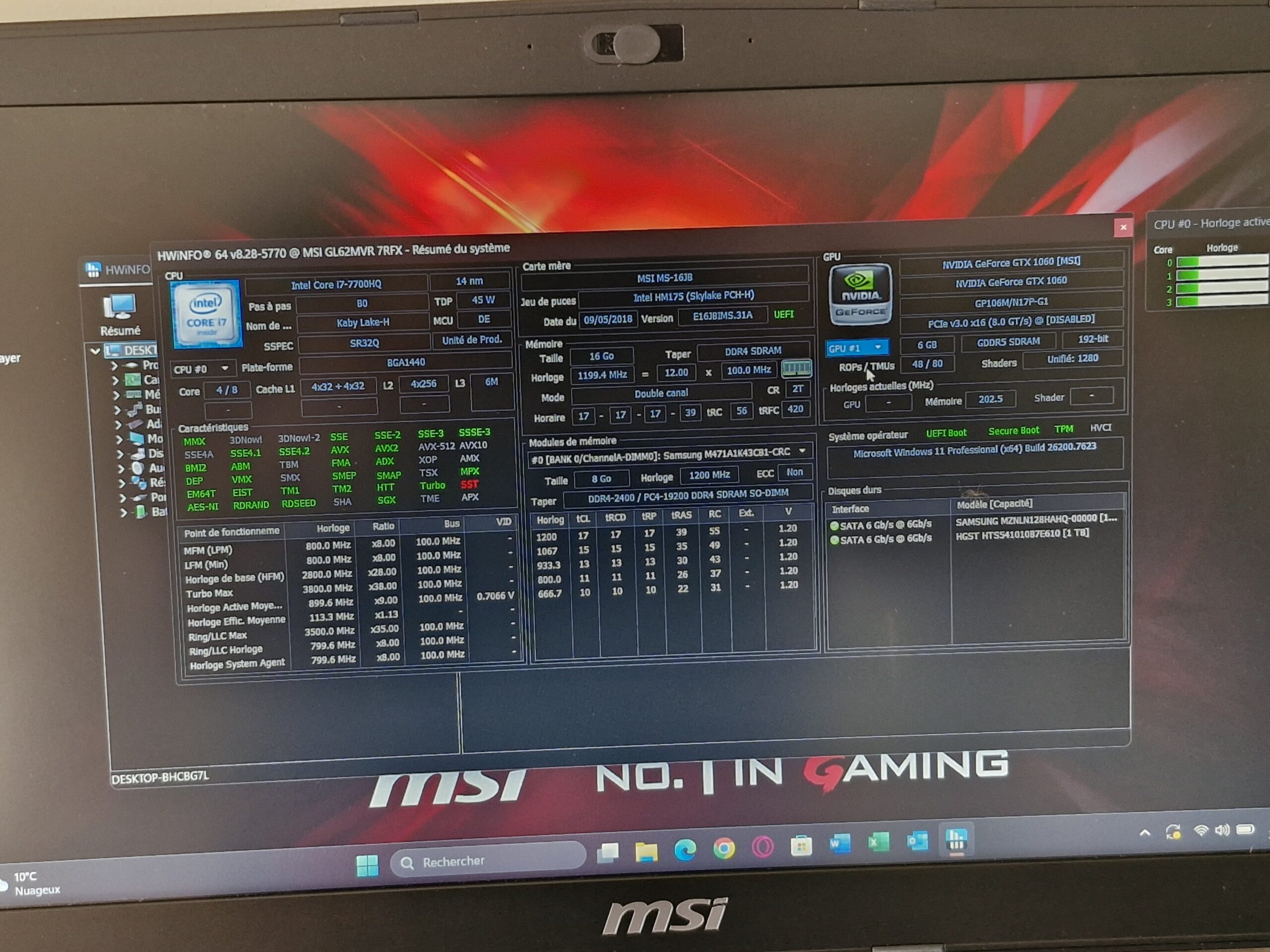 ✔️ Processeur : Intel Core i7-7700HQ (4 cœurs / 8 threads – jusqu’à 3.8 GHz)