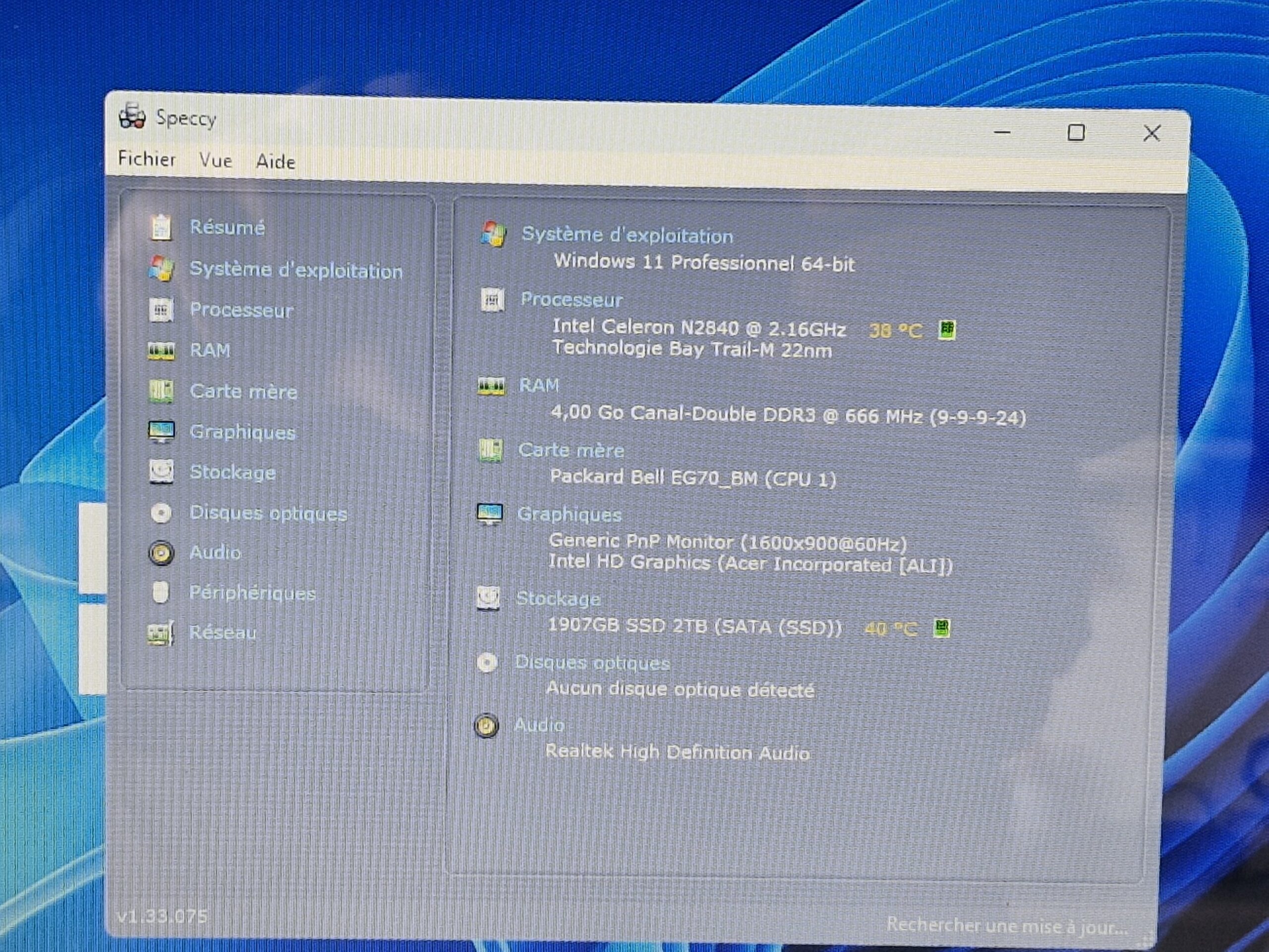 ✔️ Lecteur optique : Aucun