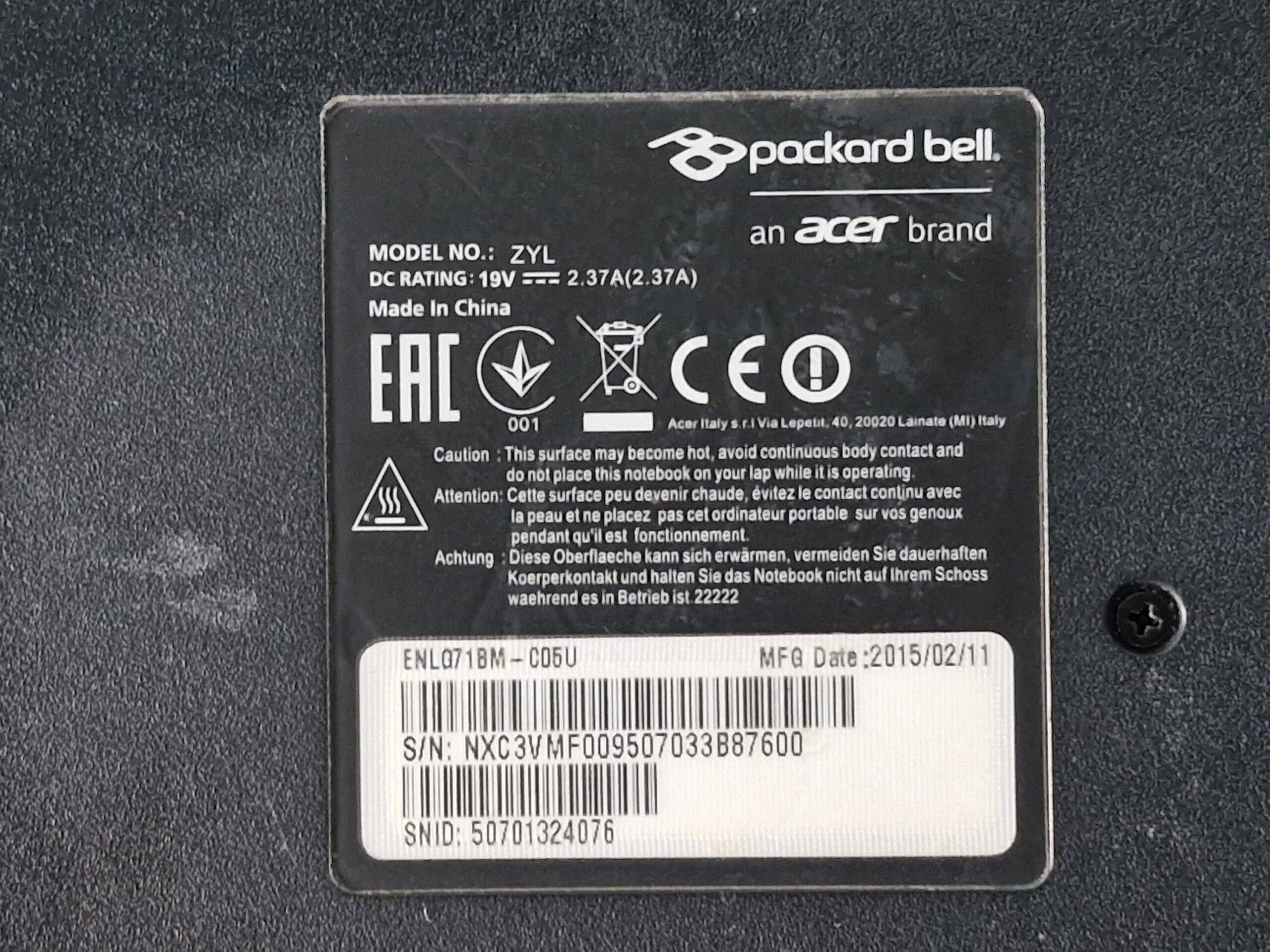 ✔️ Modèle : Packard Bell ZYL